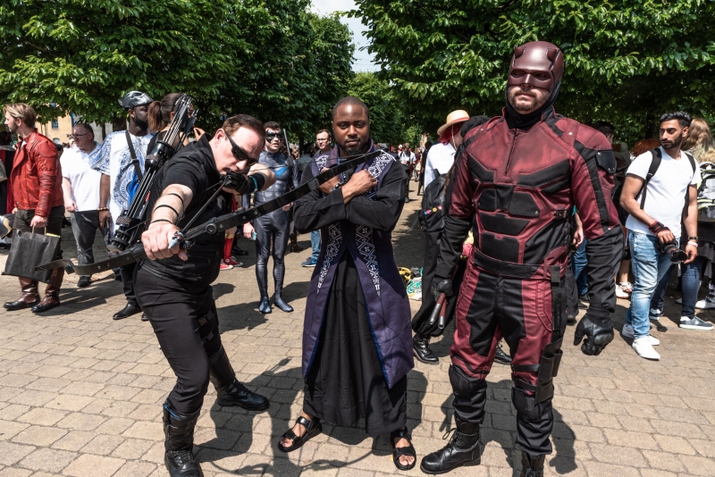 This Comic Con was special for a lot of reasons.  First I was able to reunite with a bunch of friends that I don’t get to see often and made tons of new friends.  I knew it was gonna be a busy weekend since I was cosplaying every day and on photography duty.  This was by far the best con I had ever been to and it had a lot to do with the people I enjoyed it with.  I cosplayed Ed from Good Burger on Friday and I was surprised by the reception.  I didn’t know how popular it was in the UK.  Many people said I made there Con which shocked me.  It went so well that I wore it again on Sunday.  I even was able to get behind the burger stand inside to do a video.  I was able to join my fellow @northeastavengers as T’Challa on Saturday which turned out amazing.  We joined Letitia Wright on the stage after her interview and since I was wearing sandals she graciously agreed to say “What are Thooooose!”  Honestly the whole North East Avengers have taken me in and every time we get together it just gets better and better.  We even made it into the 86th Floor music video.  On this same day I also was able to be in a Black Panther squad which was pretty damn cool.  Then we went on to meet one of the Marvel Comics and toy creator Ken Lashley who was simply down to earth and hooked us up with some artwork that I need to frame. I just want to shout out everyone who made this con awesome.  I won’t try to name everyone because I know I will miss a few.   Special shout outs must be given to my favorite photo shoots which were the Incredibles group, The Star Trek group, Spiderman and MJ, Thanos and Spidey and the Toy Story group.  I might be a little biased 🙂  Check out some of the photos of my friends.  And shout out to Karen and her Bland Ass Potato Salad!